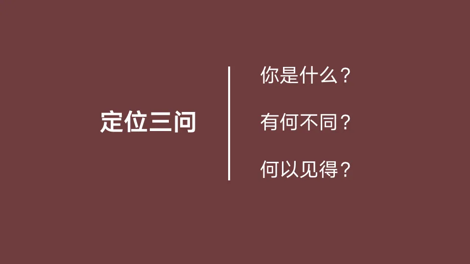 在定位的问题上,尤其是所有的消费品,你必须回答清楚你是什么、与现有的解决方案有何不同,然后我为什么相信你,何以见得?